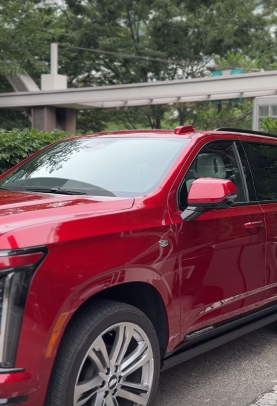 빨간색 SUV 차량은 고급스러우면서도 유니크한 디자인으로 눈길을 끌었다.