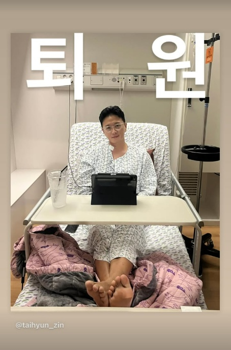 이날 진태현은 "입원, 수술, 회복 삼박자가 완벽했다. 사실 아내가 며칠 동안 손 발이 돼줘 너무 감사하다"라며 "지인들, 팬들 응원과 기도 너무 감사하다"라고 말했다.