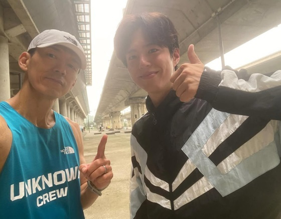 공개된 사진에는 새벽 러닝 중인 션과 박보검의 모습이 담겼다. 박보검은 새벽에도 불구, 굴욕 없는 비주얼로 눈길을 끌었다.