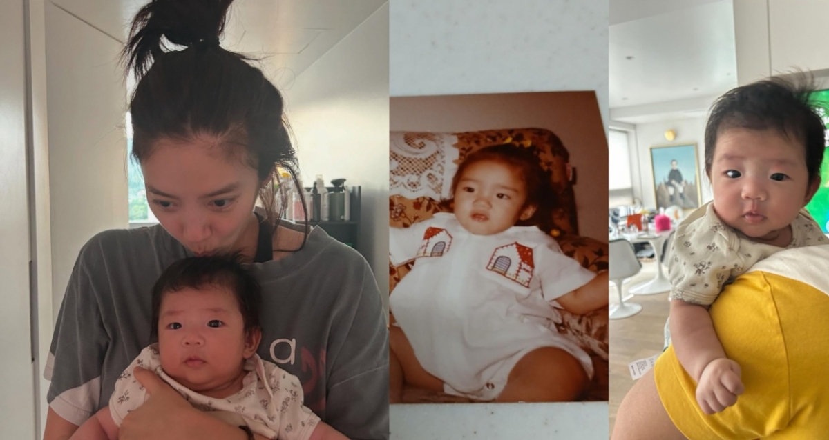 손담비는 29일 딸 해이와 자신의 엄마의 8개월 때 모습이 담긴 사진을 공개했다.