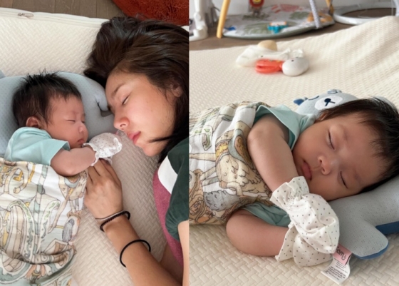손담비는 사진과 함께 "잠들기 2초전 ㅎㅎ"라며 매일 해이와 함께 행복한 날들을 보내고 있음을 내비쳤다.