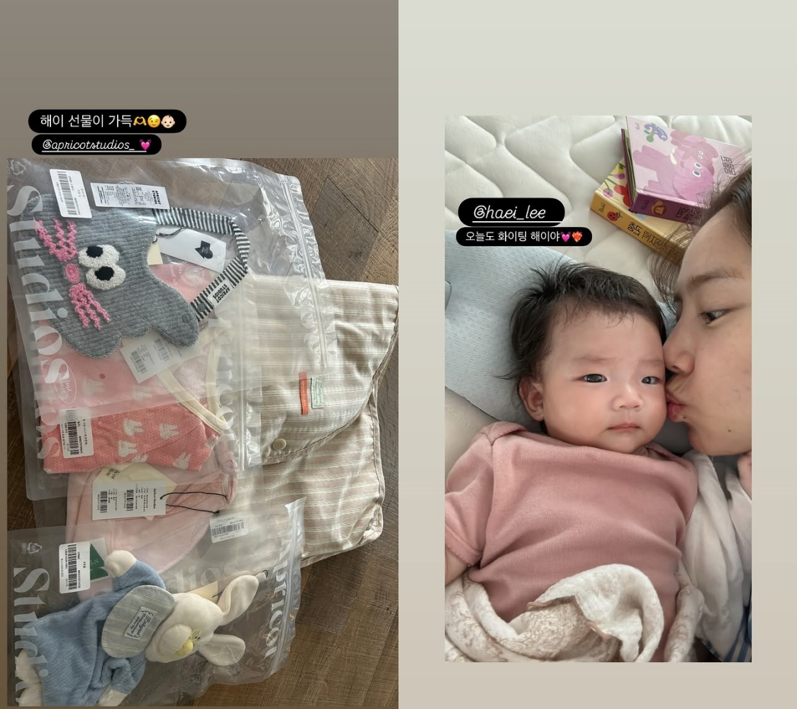 손담비, 똑 닮은 딸에 뽀뽀..쏟아지는 아기 선물 "오늘도 파이팅"