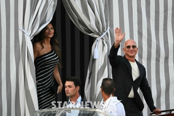 (베네치아 AFP=뉴스1) = 25일(현지시간) 아마존 창업자 제프 베이조스와 약혼녀 로렌 산체스가 결혼식을 앞두고 이탈리아 베네치아 아만 호텔을 나서고 있다. 25.06.25 ⓒ AFP=뉴스1 Copyright (C) 뉴스1. All rights reserved. 무단 전재 및 재배포, AI학습 이용 금지. /사진=(베네치아 AFP=뉴스1)