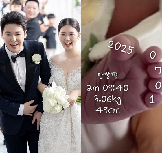 정윤혜는 1일 오후 자신의 인스타그램에 이날 오전 9시 40분, 마침내 찰떡(태명)이를 출산한 사실을 알렸다. 그는 찰떡이의 귀여운 발 사진과 함께 키 49cm에 몸무게 3.06kg이라는 스펙도 남겼다.