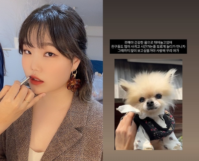 사진에는 쪼매라는 애칭의 반려견의 모습이 담겨 있다. 이수현은 반려견과의 작별을 암시한 듯한 심경을 담은 걸로 보인다.