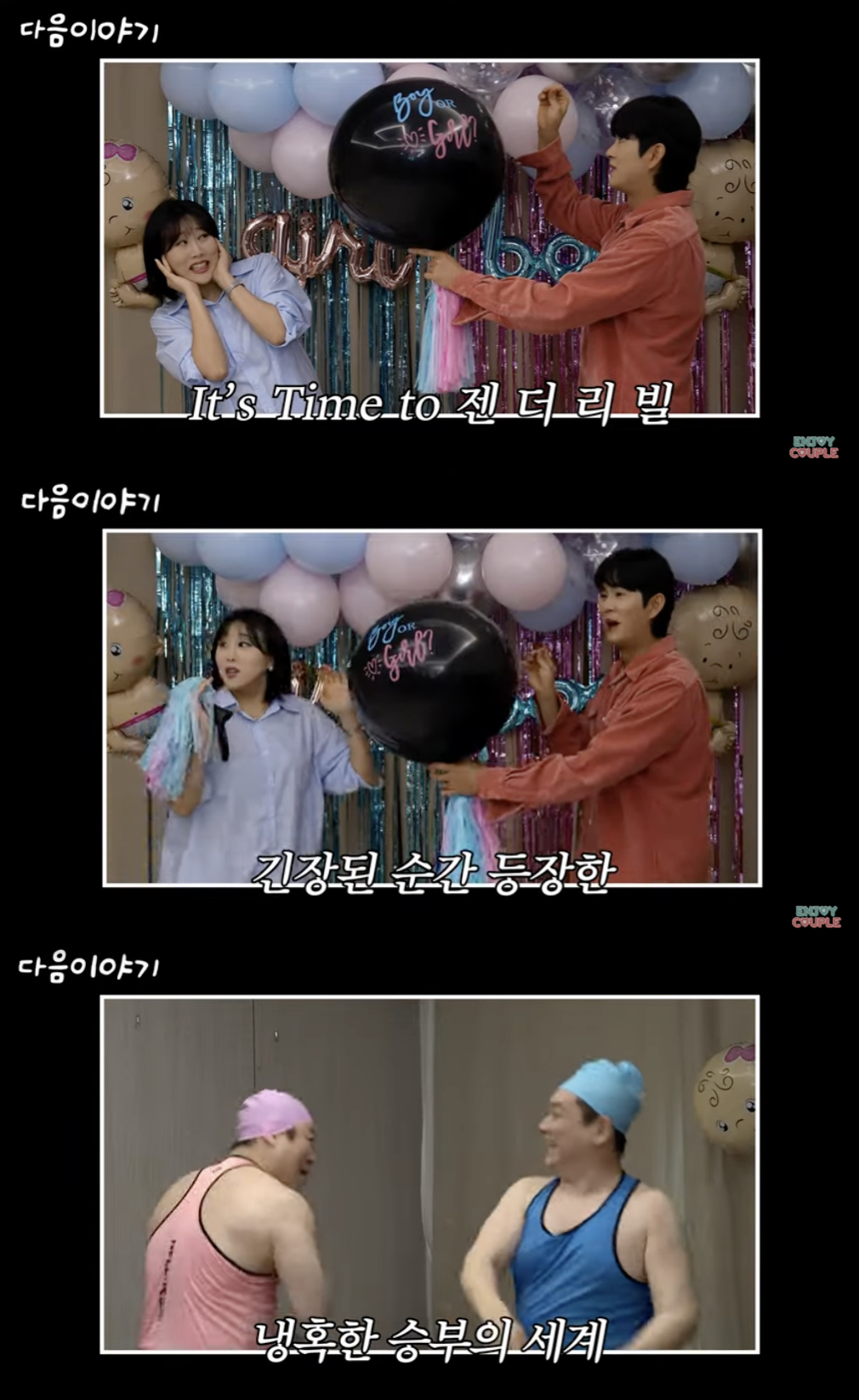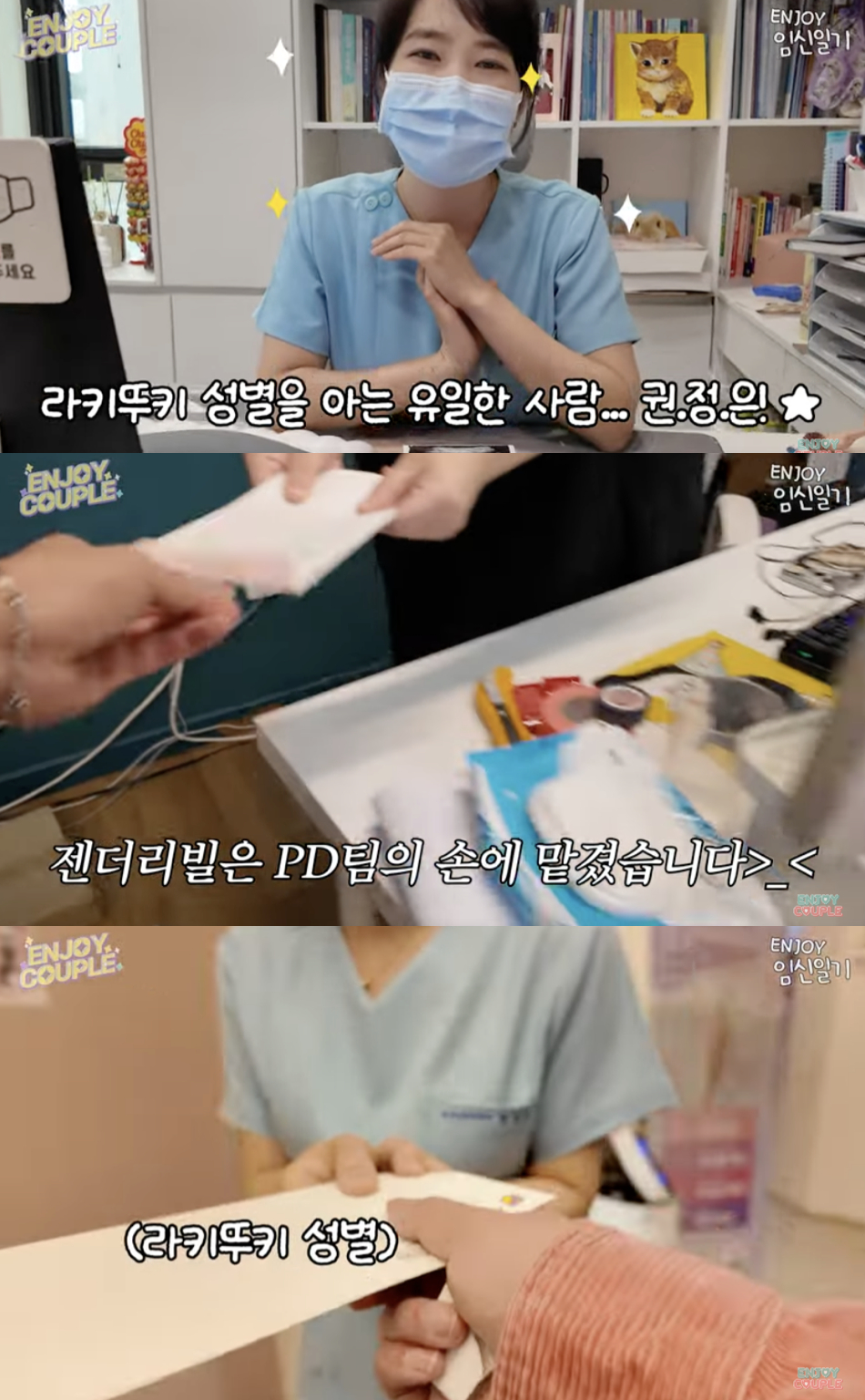 유튜브 크리에이터 부부 엔조이커플(임라라·손민수)이 쌍둥이 임신 중 성별 확인 과정을 공개했다.