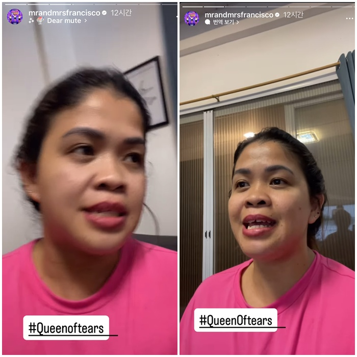 멜라이 칸티베로스 프란시스코(MELAI CANTIVEROS FRANCISCO)가 김수현 김지원 주연 드라마 '눈물의 여왕' OST '미안해 미워해 사랑해'(크러쉬(Crush) 가창)를 한국어로 가창해 자신의 공식 SNS에 공개했다. 완성도 높은 가창력과 어색하지 않은 한국어 발음이 눈길을 끈다. 멜라이는 '눈물의 여왕' 방송 당시 SNS에 시청 인증을 남기는 등 애청자임을 밝히기도 했다.