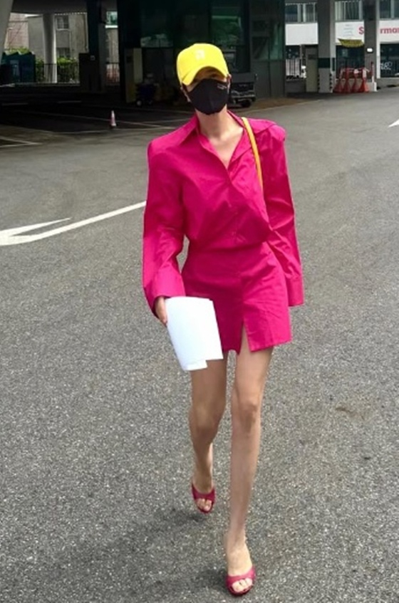 공개된 사진 속 김혜수는 핑크색 원피스와 구두로 모델 포스를 뽐냈다. 모자와 마스크로 다 가렸음에도 숨길 수 없는 아름다운 비주얼로 눈길을 사로잡았다.