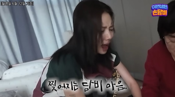 가수 겸 배우 손담비가 울음이 터진 딸 해이를 바라보며 마음 아파했다.