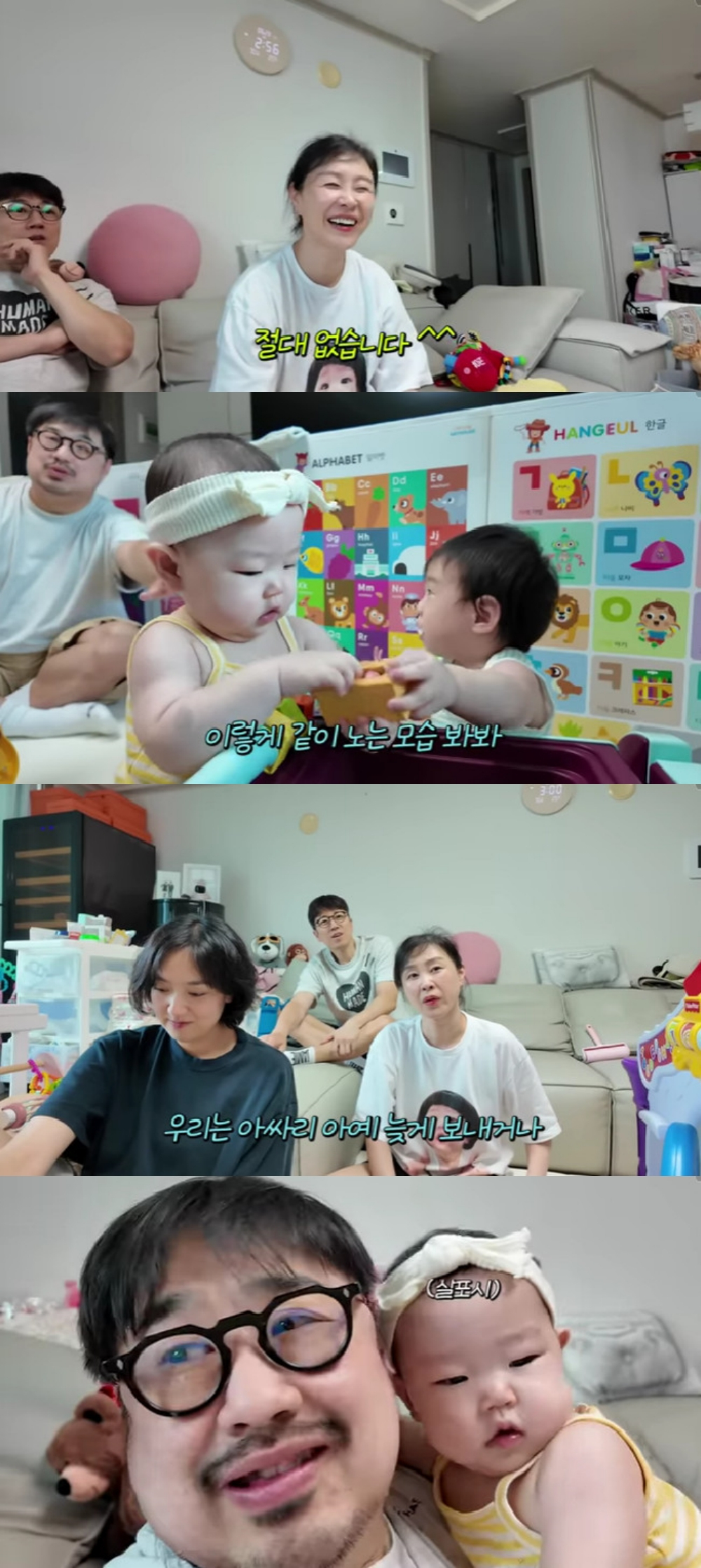 이어 "혹시나 물어보는 건데 둘째 생각이 있으시냐"라고 물었고, 장수원의 아내 지상은은 "절대 없다"고 선을 그었다. 강재준은 "이렇게 같이 노는 모습을 보면 (둘째 생각이 나지 않냐)"이라고 했고, 지상은은 "그냥 또래끼리 놀면 된다"고 했다.
