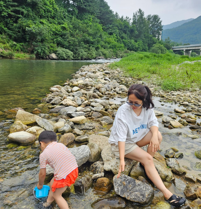 공개된 사진 속에는 경기도 가평의 한 계곡에 놀러 간 홍현희 제이쓴 부부의 아들 모습이 담겨있다. 기분이 좋은 듯 환하게 웃고 있는 아들 준범이의 사랑스러운 모습이 미소를 자아낸다.