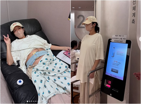 사진 속 김지혜는 산부인과에서 태동 검사를 받는 등 출산 정기 검진을 받는 모습이다.