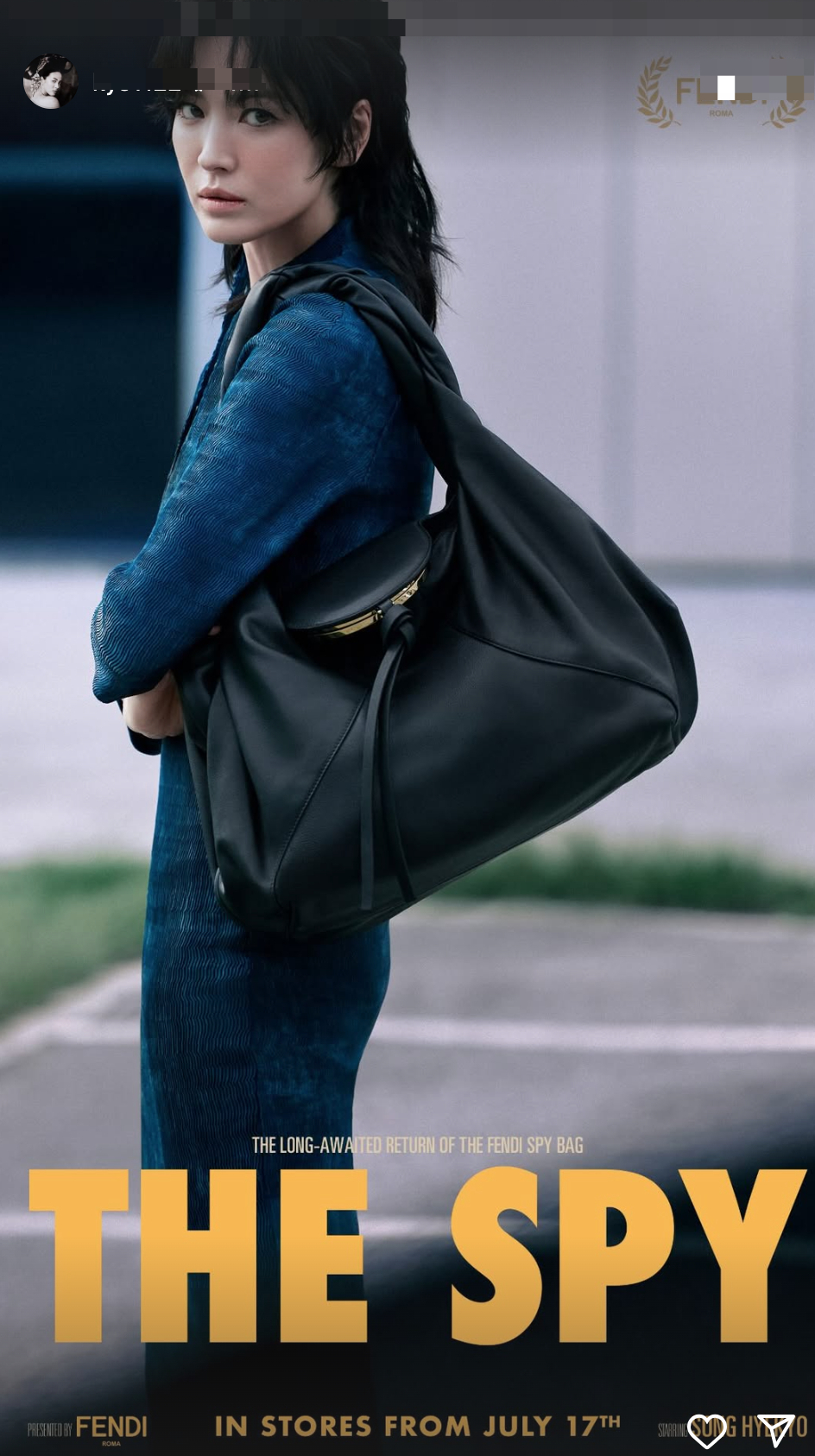 사진 속 송혜교는 마치 영화 차기작 여주인공의 아우라를 뽐내고 있다. 시크한 매력과 함께 '더 스파이'라는 타이틀이 덧붙여졌다.