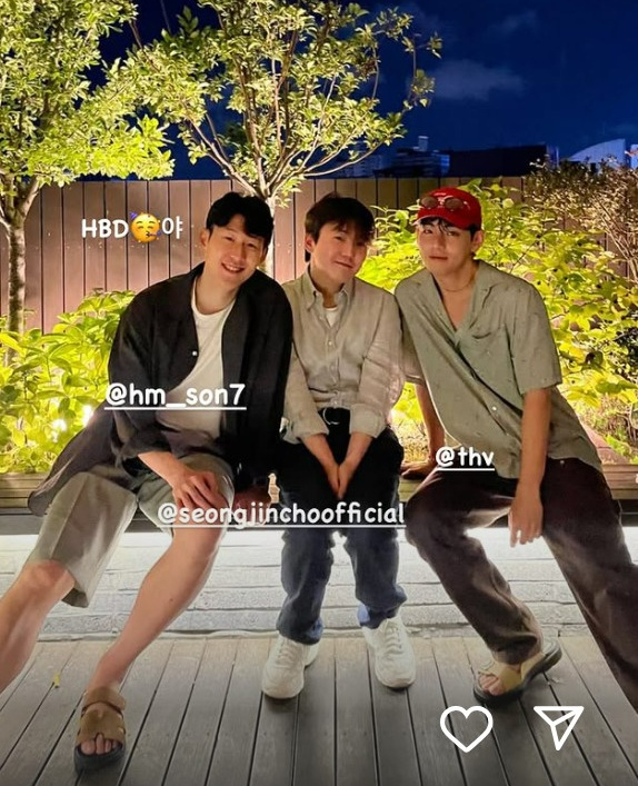 특히 뷔는 손흥민의 SNS 계정을 태그 하며 "HBD(Happy Birthday)야"라는 메시지를 보냈다. 이날 손흥민의 생일을 맞은 기념으로 뭉쳤음을 알리며, 새삼 뜨거운 우정을 확인케 했다.