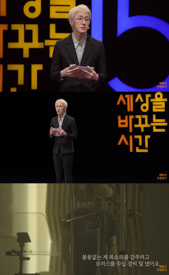 이어 그는 "강연에 참여하게 된 이유는 저는 뭔가 내세울 수 있는 사람이 아니라고 생각했다. 하지만 그저 제 갈 길을 가는 사람으로서, 같은 땅에 사는 한 사람으로서 혼잣말을 하려고 나왔다. '나는 내가 좋다' 시간이다. 믿거나 말거나 저는 제 얼굴도 제 몸도 제 음악도 다 너무 좋다. 아무튼 전 제가 좋다. 이게 뭔 소리인가 싶으실 거다"라고 말했다.