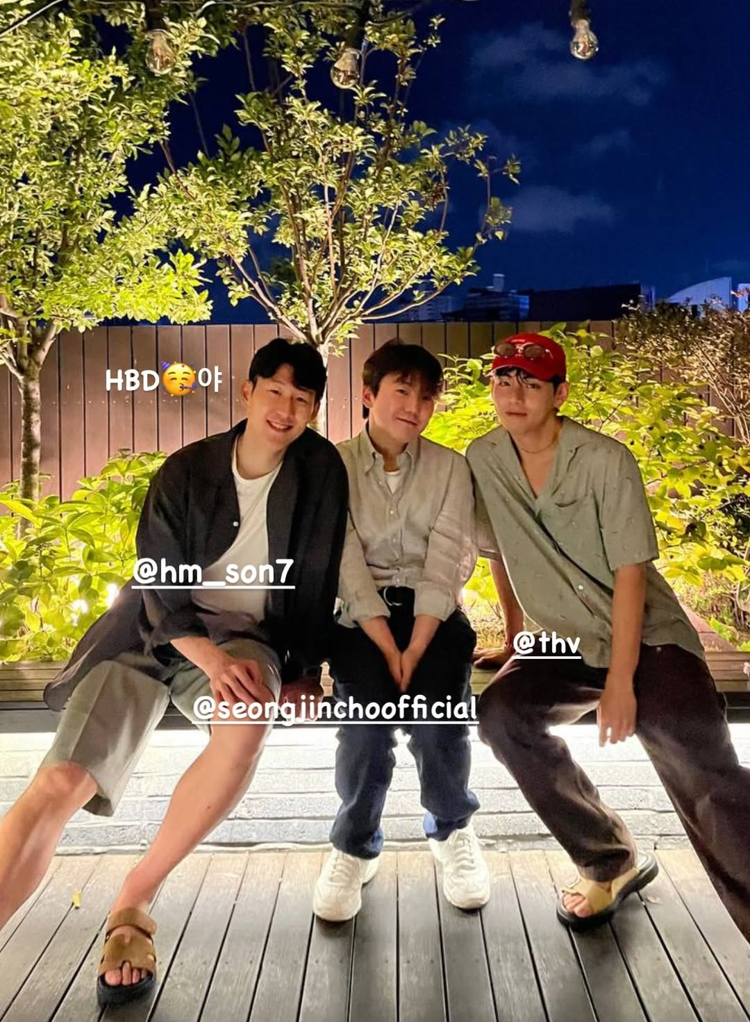 뷔는 8일 자신의 인스타그램 스토리에 "HBD(Happy Birthday)야"라며 손흥민의 생일을 축하하는 메시지와 함께 사진을 게재했다. 뷔는 현재 프랑스 파리에서 공식 일정을 소화하고 있다.