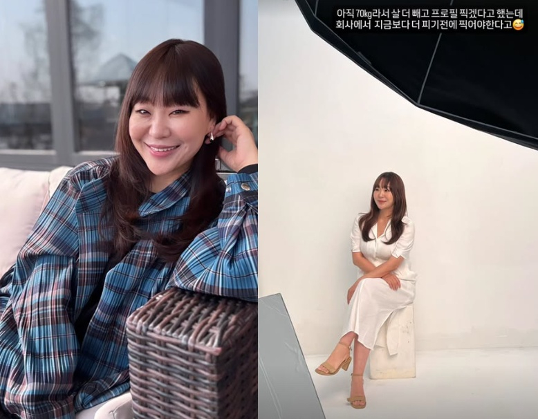 정주리는 8일 촬영 근황 사진과 함께 "아직 70kg이라서 살 더 빼고 프로필 찍겠다고 했는데 회사에서 지금보다 더 찌기 전에 찍어야 한다고"라고 전했다.