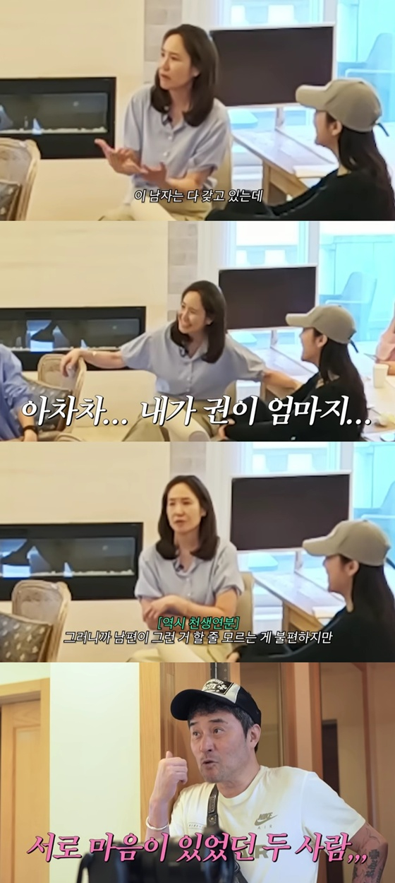 또한 강주은은 "이 남자는 다 갖고 있는데 재료를 쓸 줄 모른다"며 "그래도 요즘엔 내가 유성이 아빠(최민수)랑 같이 지내는데, 30년 살다 보니까 여자들한테 다 잘해주는 남자가 처음엔 편할 수 있다. 근데 사교적이고 잘하면 그것도 문제다. 남편이 그런 걸 할 줄 모르는 게 불편하지만 그게 괜찮을 수도 있다고 생각이 든다"고 밝혔다.