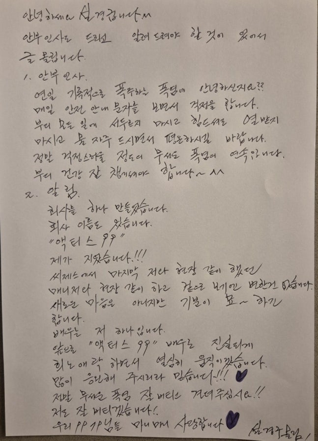 설경구는 10일 자신의 팬카페를 통해 자필 편지를 공개, 기획사 설립 소식을 전했다.