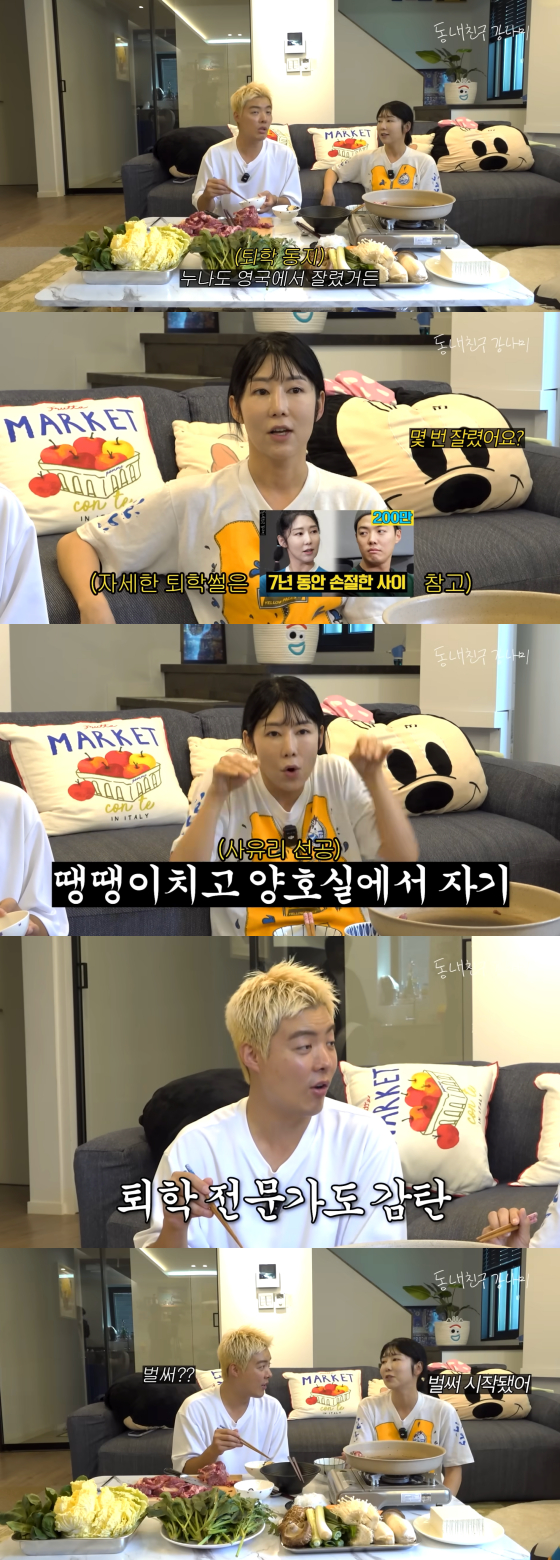 사유리는 "나도 퇴학을 두 번 당했다. 그때는 양호실에 몰래 들어가서 2시간씩 자고 나오고 그랬다"고 떠올렸다.