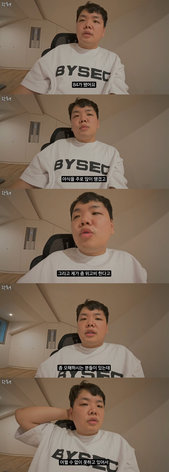 공개된 영상에서 곽튜브는 "최근 이사를 준비하느라 정신이 없었다. 그래서 야식을 주로 먹었고 아이스크림, 팝콘 같은 걸 많이 먹어서 살이 좀 찐 상태"라고 밝혔다.