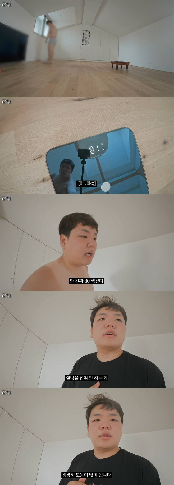 이에 그는 몸무게 84kg에서 3kg를 감량해 81kg이 됐다. 곽튜브는 "확실히 몸이 가벼워졌다. 설탕을 먹지 않는 게 (다이어트에) 굉장히 도움이 되는 것 같다"고 말했다.