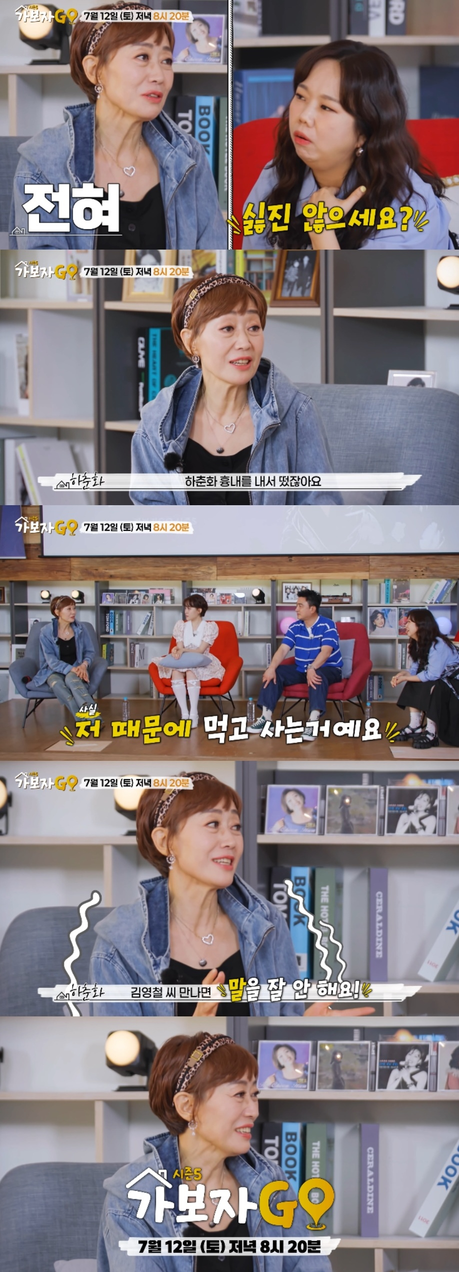 12일 방송되는 MBN '가보자GO' 시즌5 2회 선공개 영상에는 가수 하춘화의 출연이 예고됐다. 자신의 성대모사로 화제를 모은 개그맨 김영철에 관한 이야기를 털어놔 눈길을 사로잡는다.