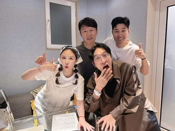 공개된 사진 속에는 곡 작업 중인 코요태 멤버 신지, 김종민, 빽가와 최준영 작곡가의 모습이 담겼다. 그러면서 신지는 오는 8월 6일 오후 6시 공개되는 신곡 '콜미'를 홍보했다.