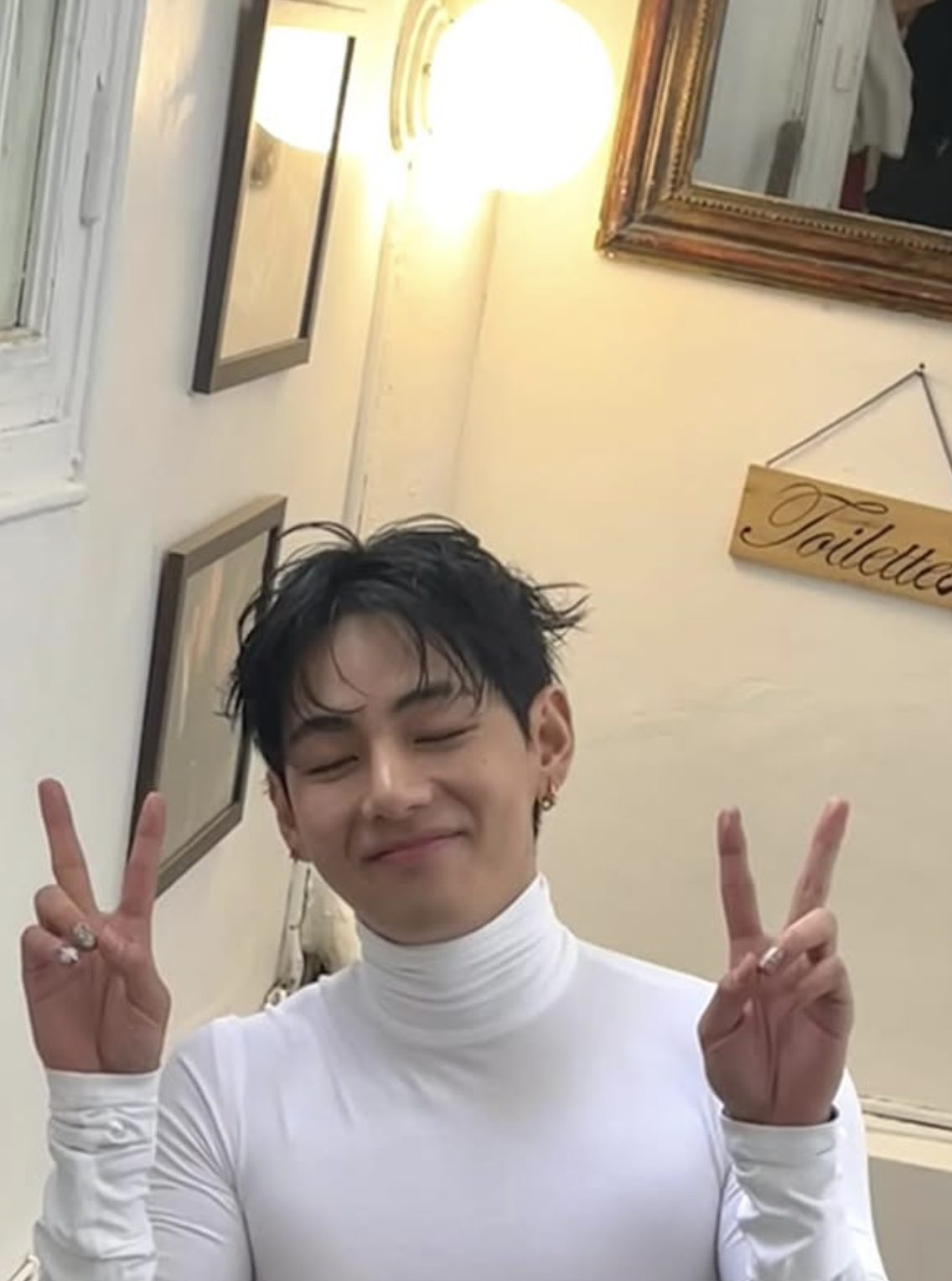 또 다른 컷에서는 헝클어진 머리 스타일로 거울 앞 셀피를 찍으며 한층 자유롭고 치명적인 매력을 드러냈다. 팬시한 레스토랑에서 식사를 즐기는 모습도 담겨, 뷔가 파리에서 보낸 감각적이고 여유로운 하루가 고스란히 전해졌다.