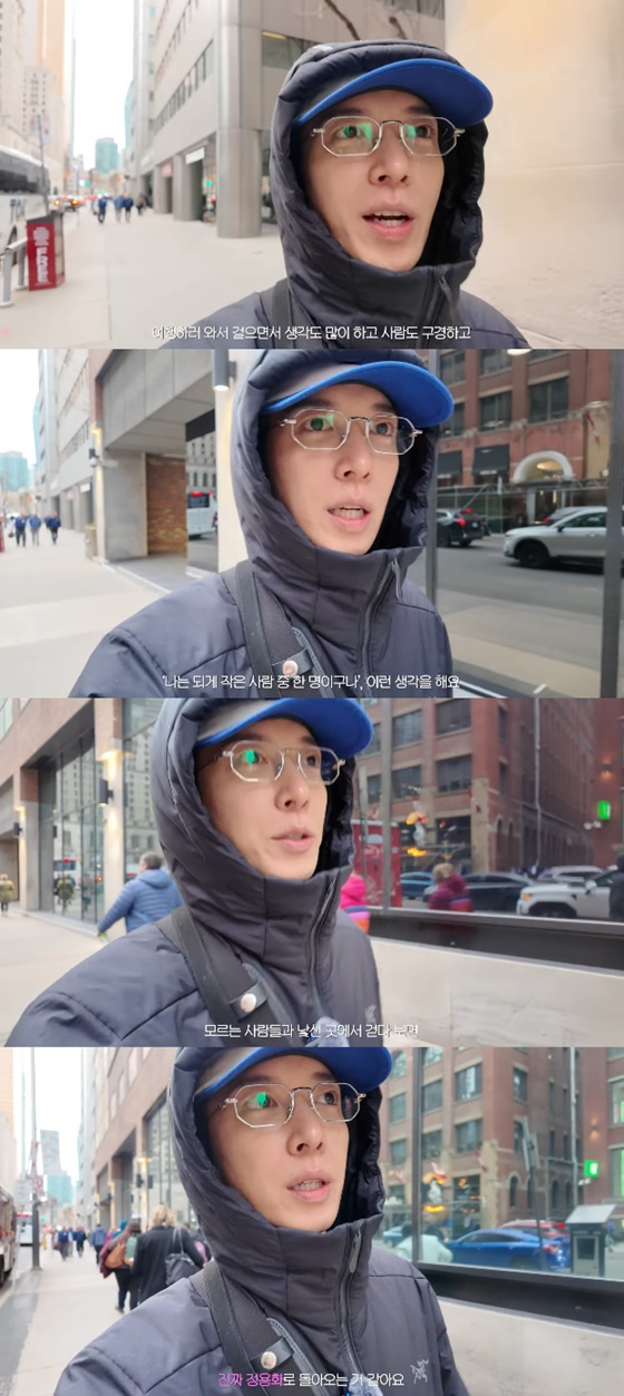 토론토 거리를 거닐던 정용화는 "제가 무릎 수술 하고 걷는 거에 대한 행복감을 까먹고 살다가 여행하러 와서 걸으면서 생각도 많이 하고 사람도 구경하고 '나는 되게 작은 사람 중 한명이구나' 생각을 한다"고 털어놨다.