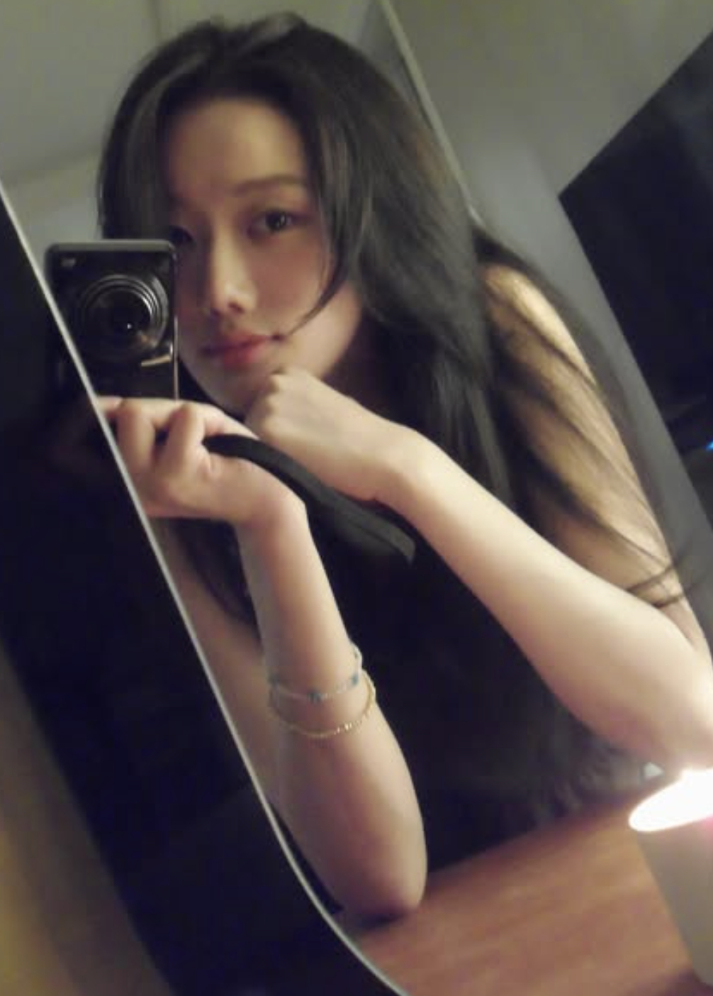 또 다른 컷에서는 디지털카메라(디카)로 거울 셀카를 찍으며 빈티지한 매력을 뽐냈다. 자연스러운 모습이 한층 편안하고 친근한 매력을 더한다.