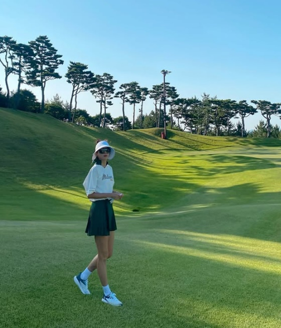 배우 박한별이 무더위에 골프를 하는 근황을 전했다.