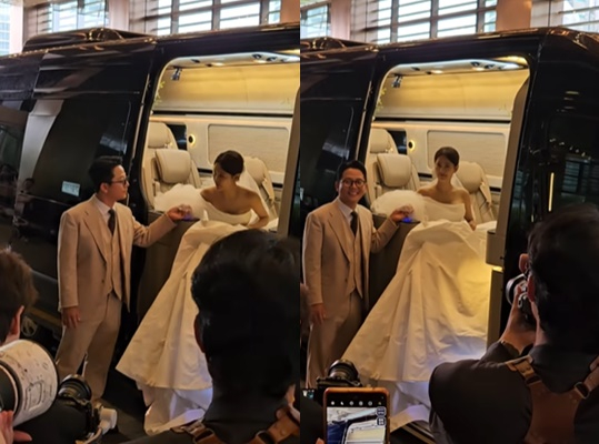 김준호와 김지민은 13일 서울 강남구 삼성동 그랜드 인터컨티넨탈 파르나스 호텔에서 결혼식을 올렸다. 이날 김준호의 지인은 자신의 개인 계정에 차량에서 내리는 김지민 김준호 부부의 모습을 공개했다.
