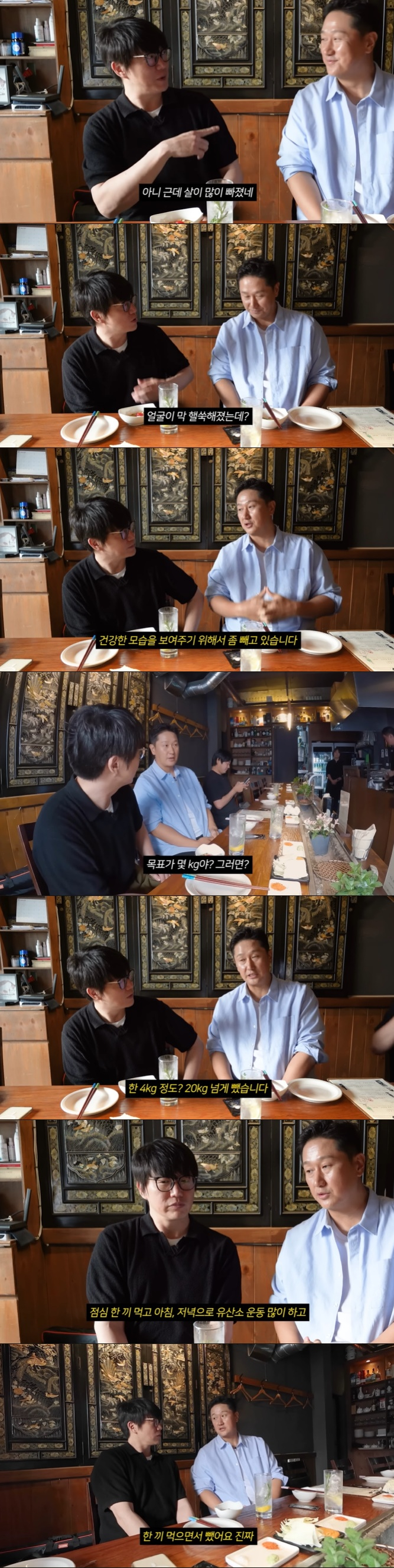 성시경이 "목표가 몇 kg이야?"라고 묻자 이대호는 "이제 4kg 정도만 더 빼려 한다. 몇 kg인지 말씀드릴 수는 없고. 20kg 넘게 뺐다"고 밝혔다.