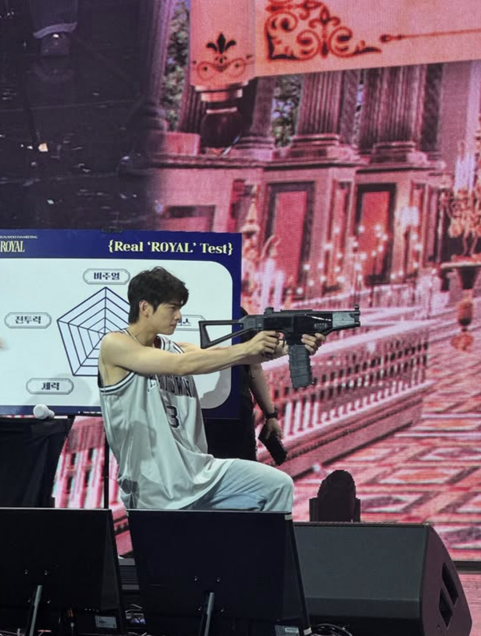 사진 속 차은우는 농구복을 연상케 하는 민소매 의상을 입고 무대 위에서 노래를 부르거나, 총쏘기 게임에 몰입한 모습으로 장난기 가득한 매력을 발산했다. 또 다른 사진에서는 깔끔하고 화려한 왕자풍 제복을 입은 채 셀카를 남기며 조각 같은 이목구비를 자랑했다.