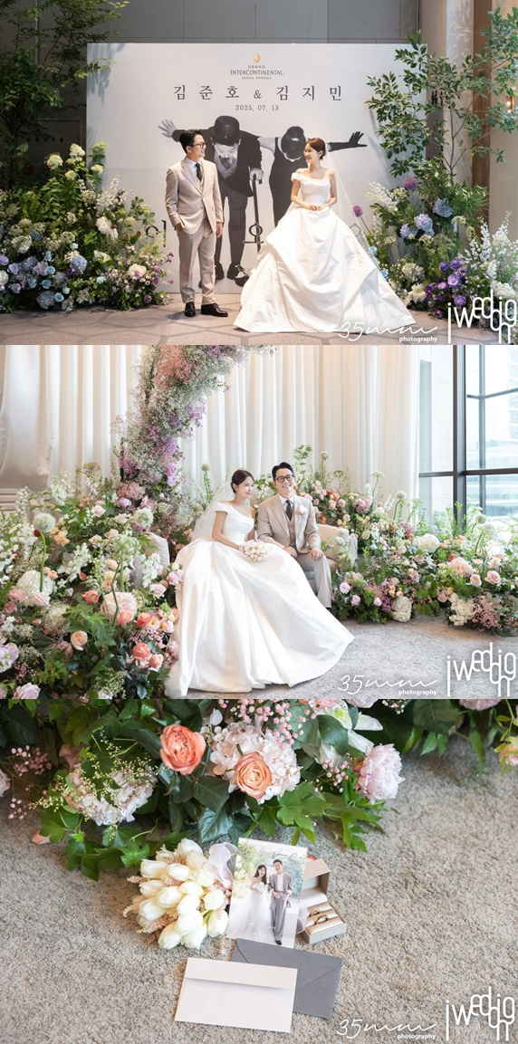 이와 함께 공개된 결혼식 본식 사진에는 아름다운 부부가 된 김준호 김지민 부부의 모습이 담겼다.