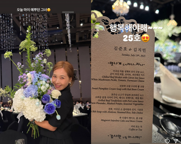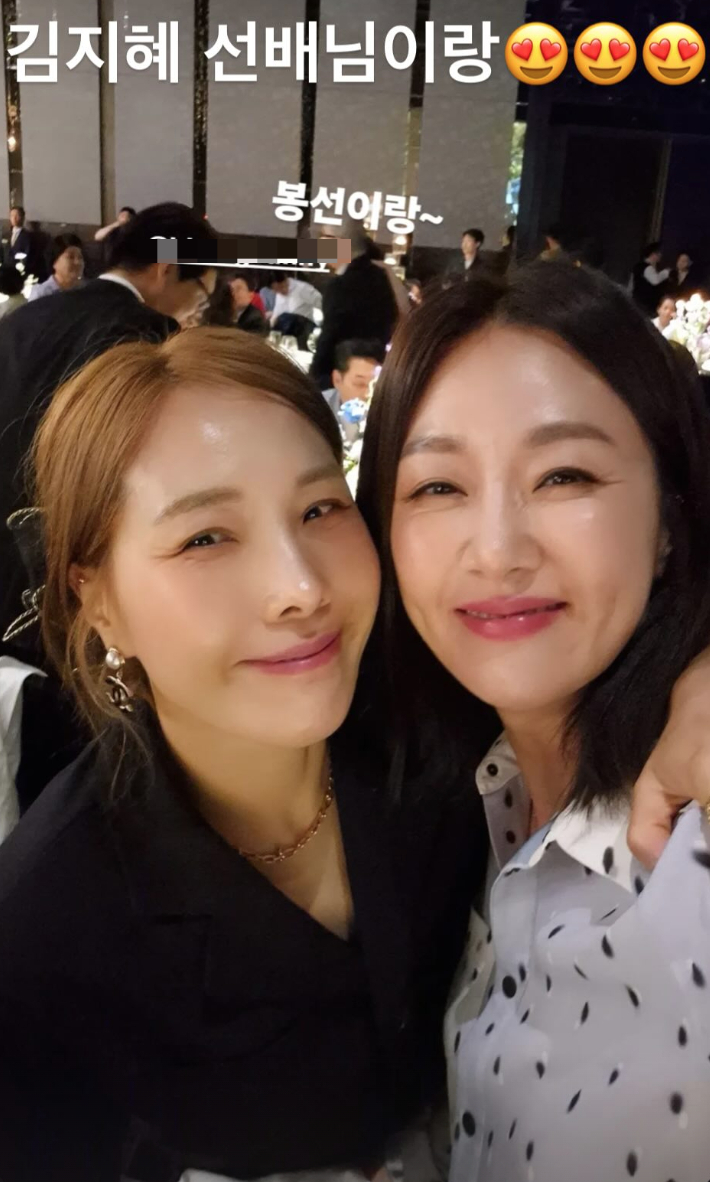 신봉선은 13일 김준호 김지민 결혼식 참석 인증샷과 함께 "행복해야해~~25"라는 문구로 두 사람의 결혼을 축하해줬다.