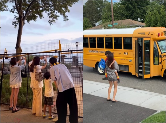 이에 앞서 이시영은 지인들, 아들과 함께 뉴욕의 일몰을 사진으로 담기 위해 붙어서 사진을 찍고 있다.