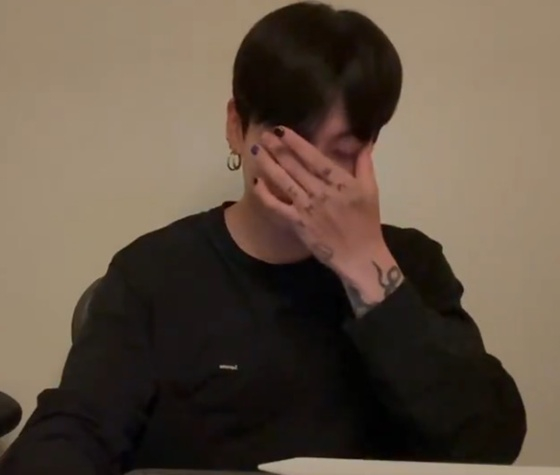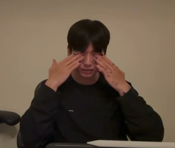 그는 "요즘 벅차면"이라고 말하며 말을 잇지 못하고 눈물을 흘리는 제스처를 취해 보였다. 그러면서 팬들에게 "뭔지 알지"라고 말했다.