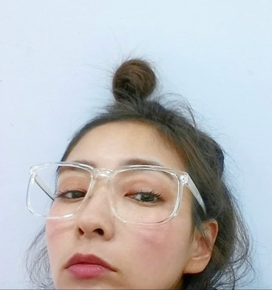 공개된 사진에는 안경을 쓰고 머리를 위로 치켜 묶은 진재영의 모습이 담겼다.