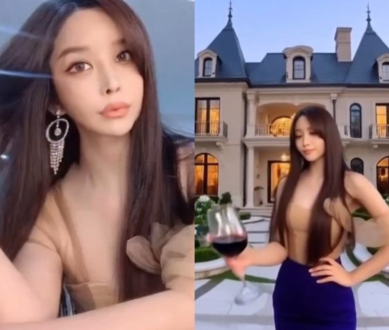 공개된 영상에서 하리수는 와인을 마시고 있다. 그러다 그의 뒤로 2층짜리 대저택이 공개됐다.