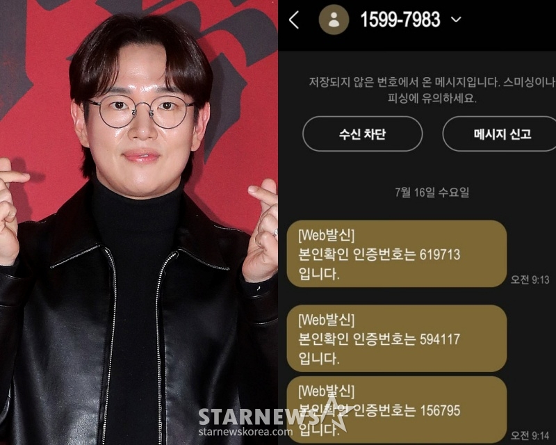 16일 장성규는 개인 SNS에 "이상하다. 인증 요청을 안했는데 인증 번호가 세 번이나 왔다. 이거 무슨 일이지. 해킹인가요!?"라며 메시지 캡처 사진을 게재했다.