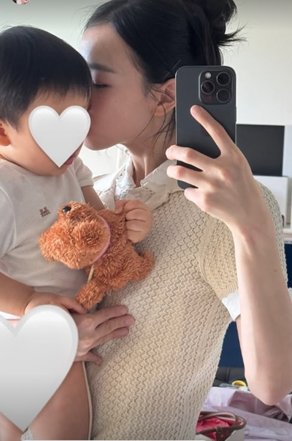 손연재는 16일 자신의 개인 계정에 거울 앞에서 아들과 찍은 사진을 게재했다. 공개된 사진 속 손연재는 거울 앞에서 아들을 안고 사진을 찍고 있다. 아들이 사랑스러운 듯 뽀뽀를 하며 거울로 사진을 찍으며 MZ다운 포즈를 보여주고 있다.