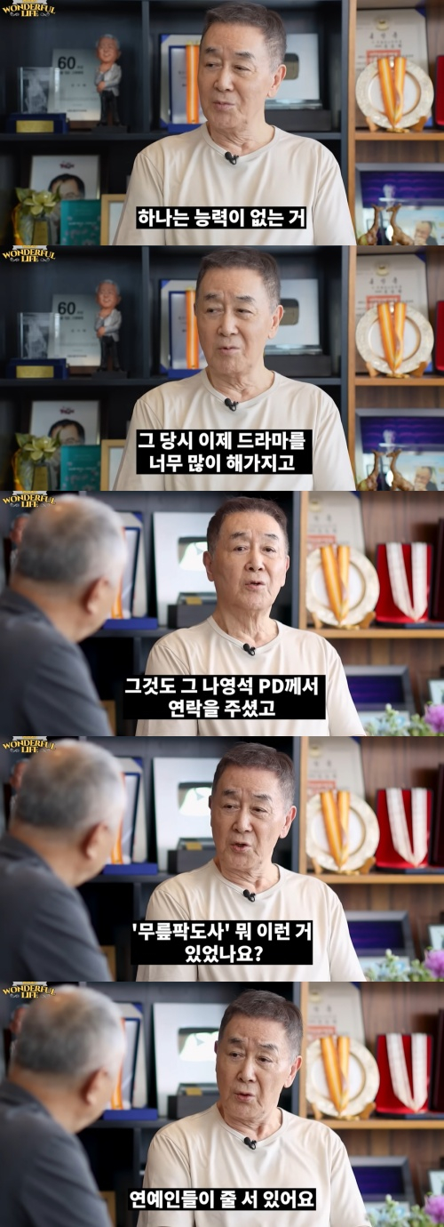 그는 "tvN '꽃보다 할배'는 나영석 PD가 직접 연락을 줬다. MBC '무릎팍도사' 같은 프로그램의 PD들도 제안을 해왔지만 다 출연하지 않았다"고 설명했다.
