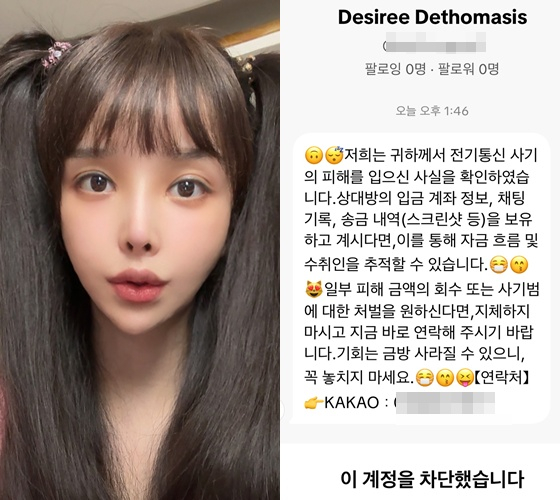 하리수는 "사기를 치려면 좀 그럴싸하게 하지. 성의도 없고. 이래서 누가 넘어가려는지? 한편으로는 다행이다. 사기꾼이 멍청해서 피해 보는 분들이 안 생길 듯. 칭찬해"라고 분노를 금치 못하며 공개 저격했다.