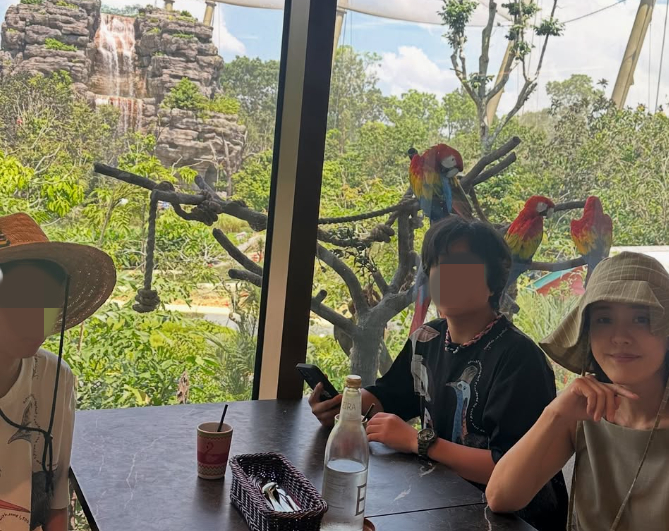 공개된 사진 속에는 쌍둥이 아들과 싱가포르 여행을 떠나 버드 파라다이스에 방문한 박은혜의 모습이 담겼다. 그는 "태양은 뜨겁고, 새는 너무 많고. 설명 사진에 새 사진에, 소리 듣는 방에서는 각각의 새 소리까지 녹음하는 재완이. 한도 끝도 없는 새 사랑"이라고 감탄했다.
