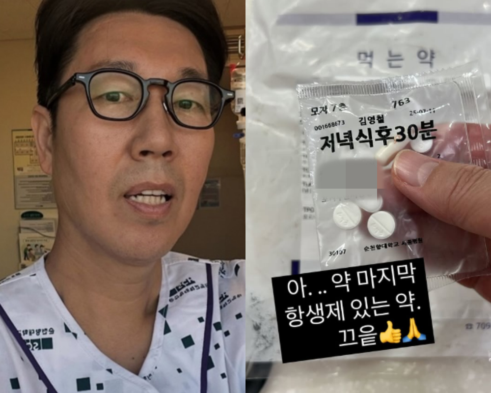 공개된 사진에는 김영철이 한 대학 병원에서 처방받은 알약 여러 개가 담겨 있다.