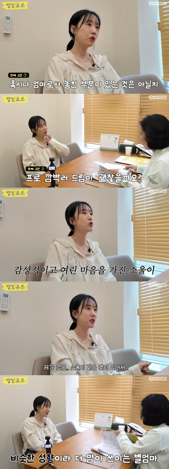 또 "완벽주의적 성향도 있어서 완벽하게 안 될 때 (소울이가) 위축되는 면이 있는 것 같다. 저한테도 소울이와 비슷한 면이 있어서 소울이가 안쓰럽다"고 소울이에 대한 생각을 털어놨다.