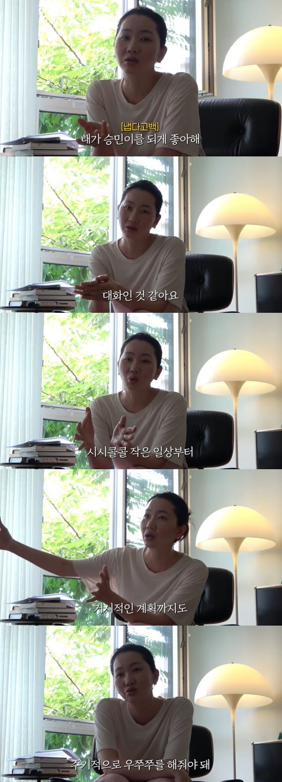 이후 집으로 자리를 옮긴 장윤주는 "주변에서 어떻게 그렇게 잘 지내냐고 물어보는데 저마다 다르겠지만 무엇보다 내가 승민이를 되게 좋아한다"고 말했다.