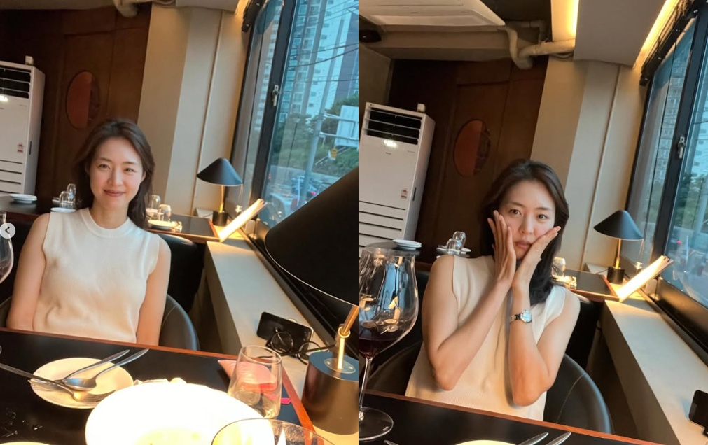 공개 된 사진 속 이연희는 와인잔과 음식 등이 놓여진 레스토랑 내 테이블을 바라보고 앉아 카메라를 응시하고 있다.